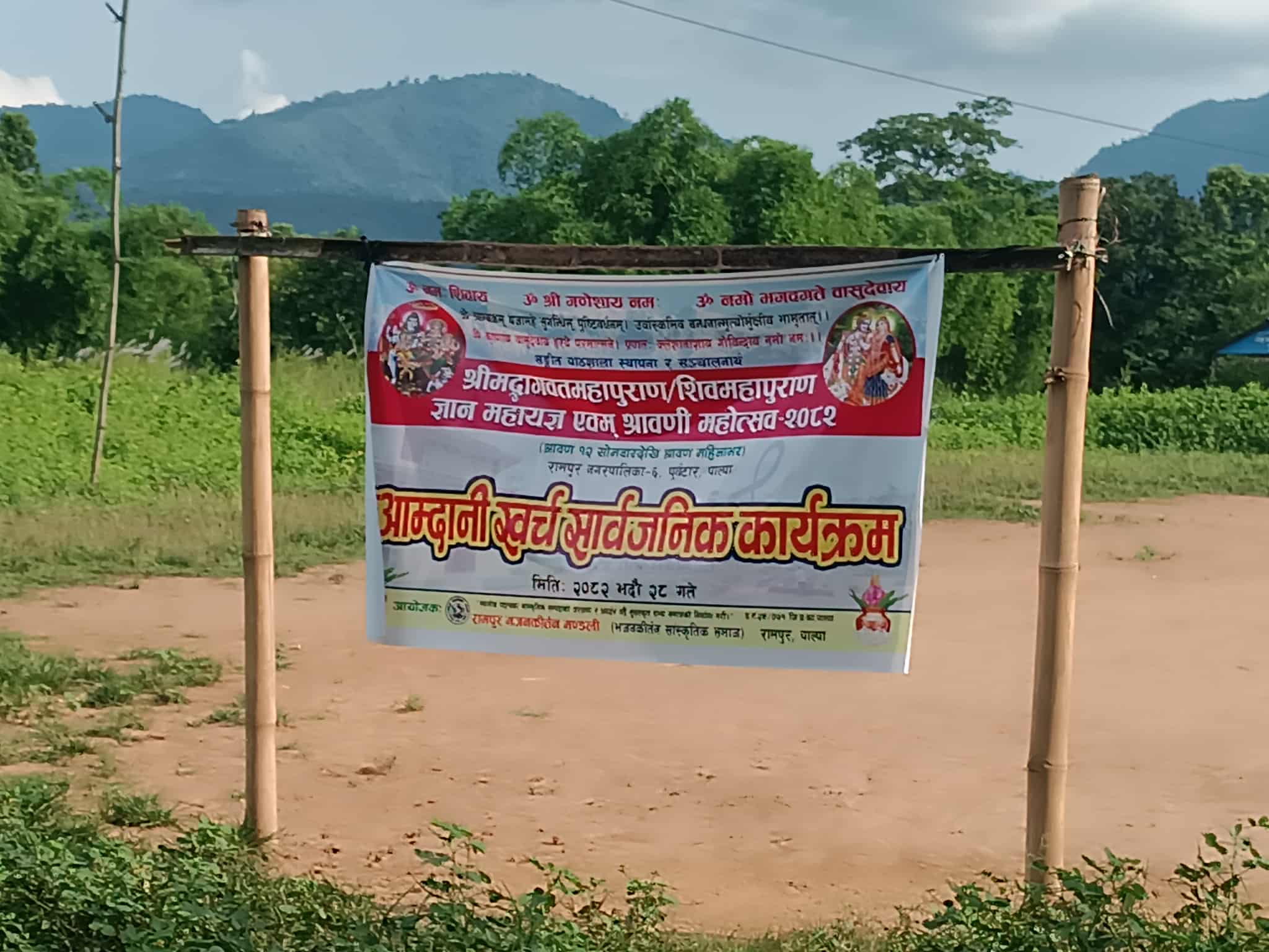 पाल्पा । श्रीमद्भागवत महापुराण ज्ञान महायज्ञ एवम श्रावणी महोत्सवको खर्च सार्वजनिक गरिएको छ । गत साउनमा भएको श्रीमद्भागवत महापुराणरशिवमहापुराण ज्ञान महायज्ञ एवम् श्रावणी महोत्सव मूलआयोजक समितिले साउन १२ देखि ३१ गते सम्म सञ्चालन भएको महायज्ञको शनिबार खर्च सार्वजनिक गरेको हो । संगित पाठशाला सञ्चालन सहयोगार्थ रामपुर भजन कर्तिन मण्डली...