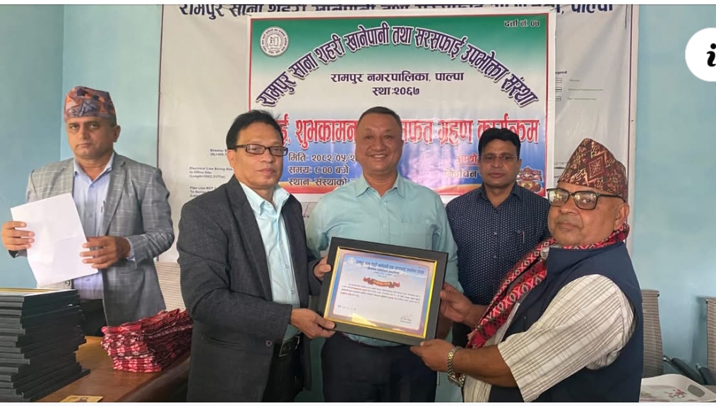 पाल्पा । रामपुर साना शहरी खानेपानी तथा सरसफाई उपभोक्ता संस्थाका नव निर्वाचित पदाधिकारीहरूले आइतबार एक कार्यक्रमका बीच सपथ ग्रहण गर्दै पदभार ग्रहण गर्नु भएको छ। गत भदौ २१ गते सम्पन्न निर्वाचनबाट निर्वाचित पदाधिकारीहरूले निर्वाचन सम्पन्न भई भदौ २२ गते साँझ मतगणना सम्पन्न भए पनि मुलुकमा उत्पन्न विशेष परिस्थितिका कारण...
