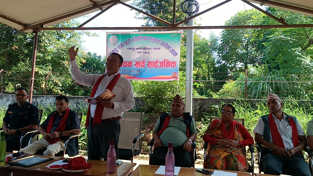रामपुर साना शहरी खानेपानी तथा सरसफाई उपभोक्ता संस्थाको अधिवेशन अन्तर्गत भदौ २१ मा सम्पन्न निर्वाचनको खर्च विवरण सार्वजनिक गरिएको छ। खर्च सार्वजनिक गर्नुहुँदै रामपुर नगरपालिकाका प्रमुख प्रशासकीय अधिकृत एवं निर्वाचन अधिकृत सुर्य दर्शन पण्डितले मितव्यायी रूपमा खर्च गरिएको बताउनुभएको छ। उहाँले ६ लाख २ रुपैया बराबरको खर्च सार्वजनिक गर्नुभएको...