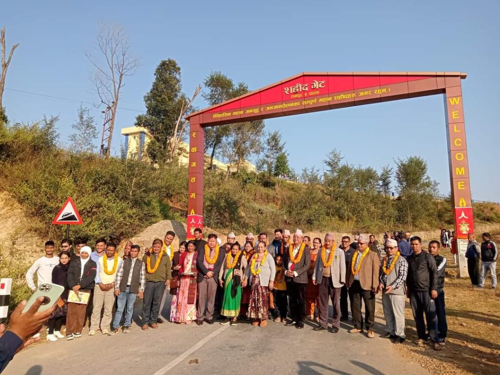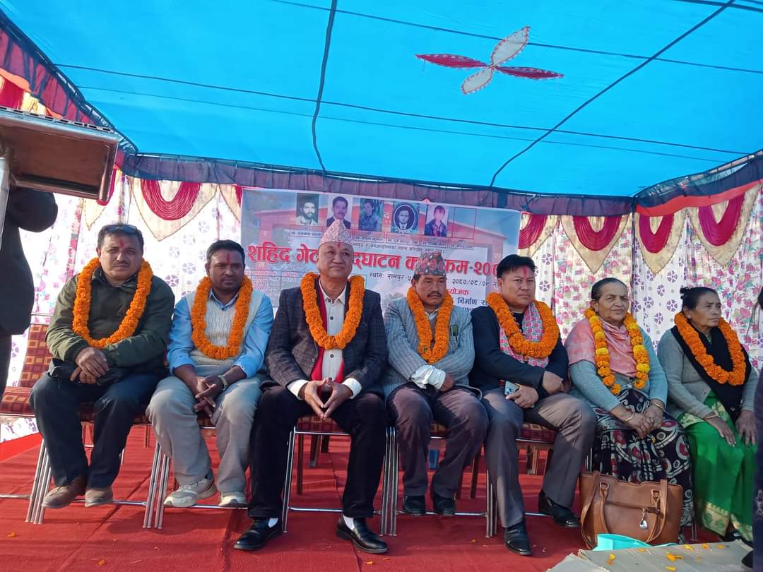जनयुद्ध र जनआन्दोलनका शहिदहरुको सम्झनामा कालीगण्डकी करिडोर सडक खण्डमा निर्माण गरिएको गेटको समुद्घाटन गर्दै लुम्बिनी प्रदेशका अर्थमामिला मन्त्री धन बहादुर मास्कीले “व्यवस्था प्राप्तिका लागि सहादत प्राप्त गर्नुहुने शहिदहरु प्रति श्रद्धाञ्जली व्यक्त गर्नुभयो ।” उहाँले भन्नुभयो, “शहिदको बलिदानी यो लोकतन्त्र आएको हो ७२ सालको नयाँ संविधानमा छ । र आज तपाई हामीले सुन्दर लोकतन्त्रको अभ्यास गरिरहेका छौं । समाजवादको यात्रामा अघि बढिरहेका छौं ।” उहाँले रामपुर अस्पताललाई व्यवस्थित गर्दै स्तरीय सेवा प्रदान गर्न प्रदेश सरकार प्रतिवद्ध भएर लागेको बताउनुभयो ।
