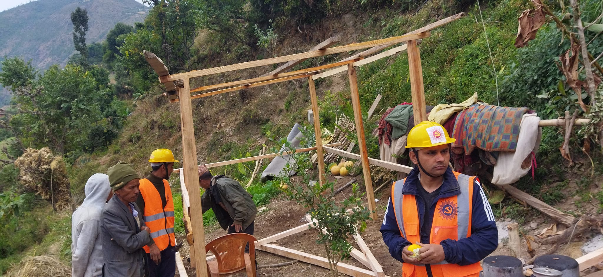 सांसद आचार्य सहितको नेकपा एमाले पाल्पा, राष्टिय युवा संघ पाल्पा र अनेरास्ववियु पाल्पाका नेता, कार्यकर्ता गरी १५ जनाको स्वयमसेवक समूहले भूकम्प पीडितका अस्थायी घर निर्माण गर्दै आएको नेकपा एमाले जिल्ला कमिटी उपाध्यक्ष देबिलाल लामिछने बताउनु भयो । साथै १५ दिन सम्म स्वयमसेवककाे रूपमा काम गर्ने बताउनु भयाे ।