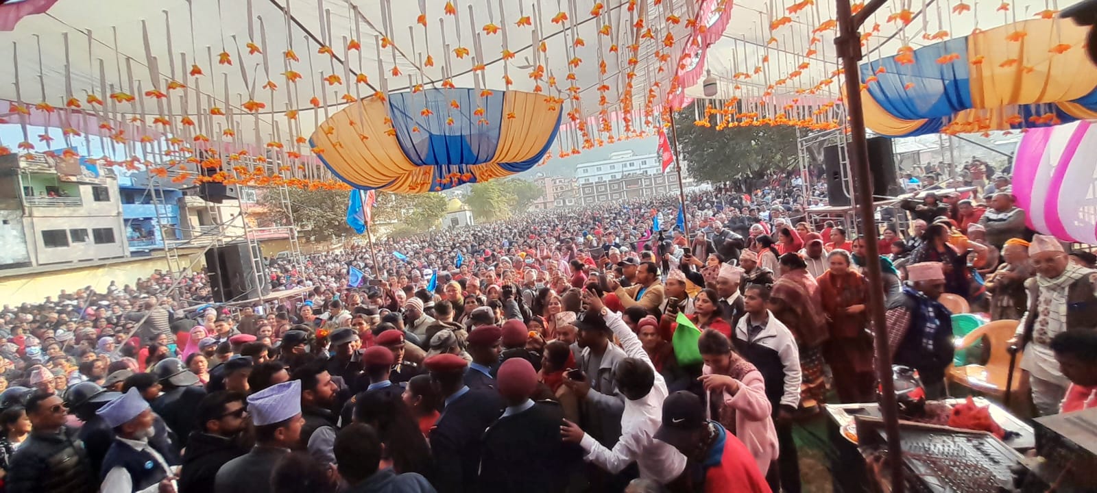 सहभागिहरु तर्फ इंकित गर्दे भन्नु भयो ‘कि लाउ माया एकतिर नलाउ दुई तिर…’ भन्दै दुवै पार्टी तिर माया नलगाउन अनुरोध समेत गर्नुभएको थियो । लामिछानेले भन्नु भयाे ‘मत परिवर्तन गरिएन भने देश परिवर्तन हुँदैन, आस्था राखेको पार्टीको झण्डा बोक्नुस, नभए म नयाँ झण्डा किनेर ल्याइदिउला, पार्टी नफेर्नस तर मत परिवर्तन गर्नुस् । भोट दिने बेलाको समय ३० मिनेट सोच्नुस् मत परिर्वतन गर्नुस देश परिर्वन हुनेछ ।’ देशमा बेथिति, भष्टचारको कैयौं फोहोरको डंगुर छन् त्यसलाई सफा गर्न डंगुर भित्र पस्नै पर्छ नत्र देश र जनताले विकास पाउदैन ।