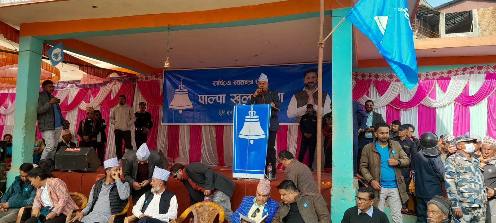 राष्ट्रिय स्वतन्त्र पार्टी पाल्पाका संयोजक विष्णु प्रसाद भण्डारीको अध्यक्षतामा भएको पाल्पा खुला सभा रामपुर नगर सभापति अर्जुन श्रेष्ठको स्वागत र पाल्पा उपसंयोजक सुमन गैरेको सञ्चालनमा भएको हो ।