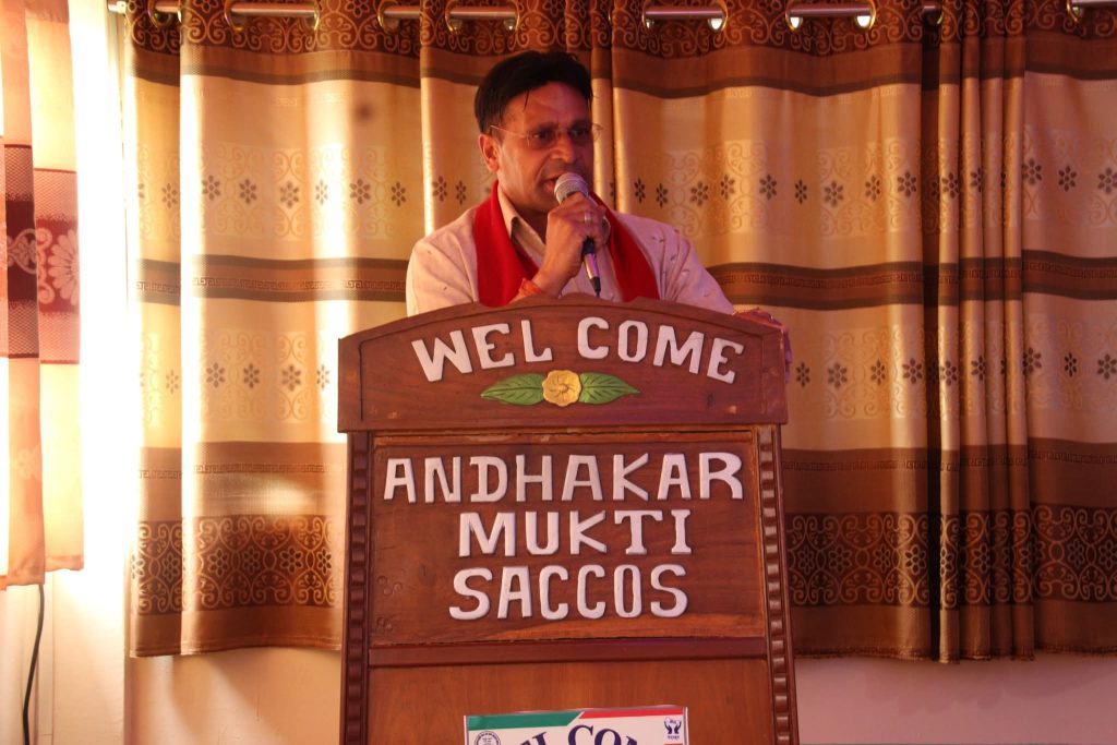 थापाले देशका विभिन्न स्थानमा सहकारीमा ठगीको घटना सार्वजनि भैरहेको सन्दर्भमा रामपुर नगर क्षेत्रमा रहेका सहकारीमा कुनै समस्या नरहेको र ढुक्कका साथ कारोबार गर्न समेत आग्रह गर्नुभयो । अन्धकारमुक्ति साकोसका अध्यक्ष सागर प्रसाद देवकोटाले व्यवसाय सञ्चालन गर्दै आउनु भएका शेयर सदस्यहरुलाई आर्थिक रुपमा सक्षम र सफल बनाउनका लागि आवश्यक सिप प्रदान गर्न तालिम सञ्चालन गरिएको जानकारी दिनुभयो ।