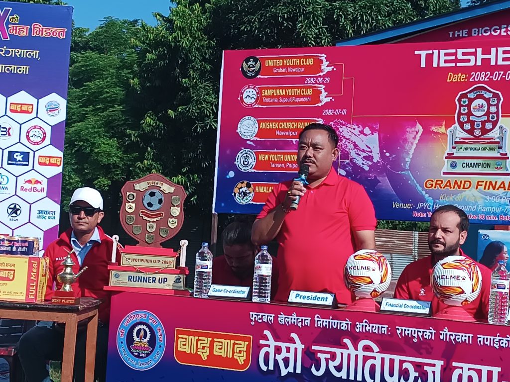 कालीगण्डकी वेशी क्षेत्रकै सबैभन्दा ठूलो प्रतियोगिताका रूपमा परिचित ज्योतिपुञ्ज कप यस वर्ष “फुटबल खेल मैदान निर्माणको अभियान : रामपुरको गौरवमा तपाईंको योगदान” भन्ने नाराका साथ आयोजना गरिएको हो। अध्यक्ष रानाले यस वर्षको संस्करण विगतको भन्दा अझ व्यवस्थित र प्रभावकारी बनाउन विशेष तयारी गरिएको बताउनुभयो।