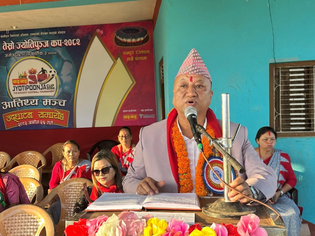 कार्यक्रमका प्रमुख अतिथि लुम्बिनी प्रदेश सभा अर्थ, उद्योग तथा पर्यटन समिति सभापति माननीय राजु प्रसाद श्रेष्ठले युवाको क्षमता अभिवृद्धि, सामाजिक एकता र शान्तिको सन्देश फैलाउने माध्यमका रूपमा खेलकुदको महत्व उल्लेख गर्नुभयो। उहाँले रामपुरमा सुरु भएको फुटबल मैदान निर्माण अभियानले स्थानीय गौरव र पर्यटन प्रवर्द्धनमा टेवा पुग्ने विश्वास व्यक्त गर्नुभयो।