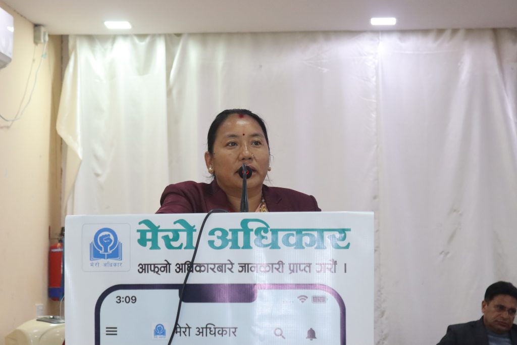 रामपुर नगरपालिकाका उपप्रमुख बालकुमारी थापाले अन्तरक्रियात्मक छलफल कार्यक्रमले कानुनी पहिचानको अधिकारको संरक्षण संगै समस्याको समाधानका लागि महत्वपूर्ण सहयोग गर्ने बताउनुभयो ।